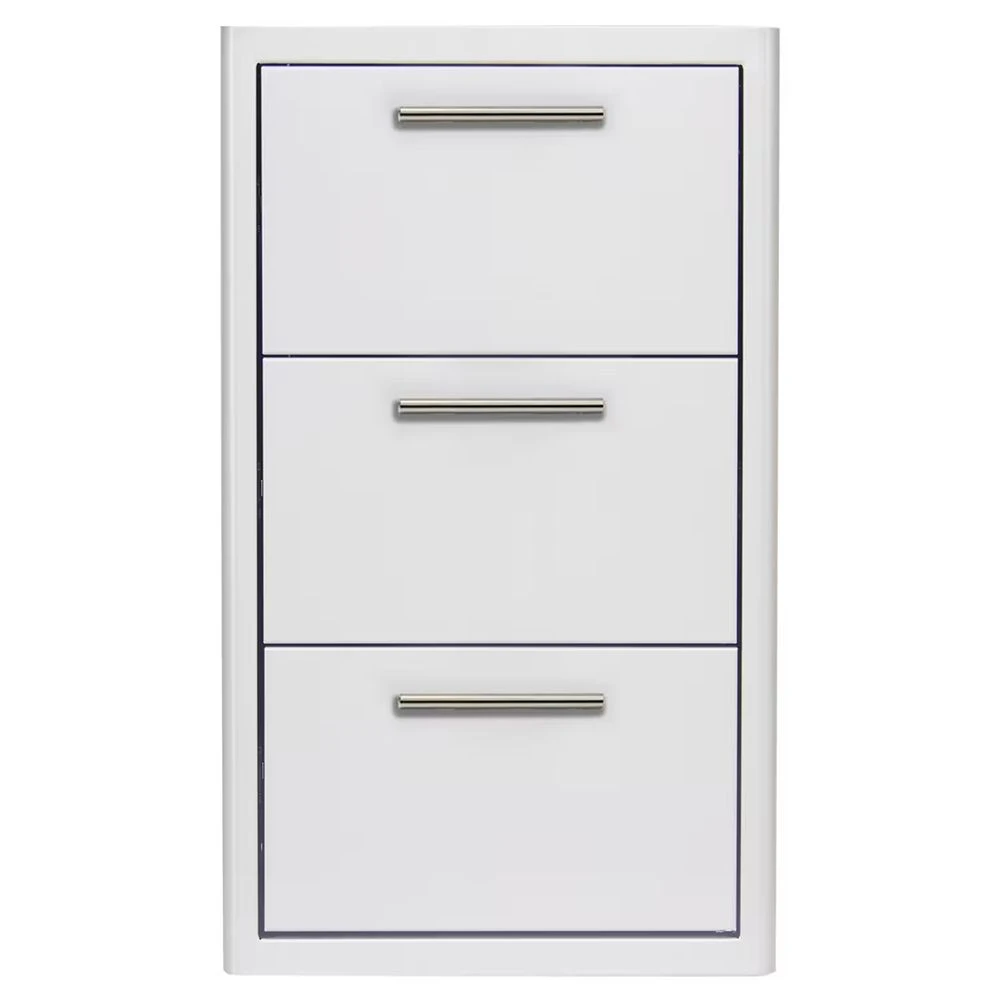 Blaze Triple Drawers, 29.625×17.375-Inch provides a high quality outdoor kitchen component to complete your ultimate outdoor BBQ paradise. This unit features a 304 stainless steel construction with smooth welded joints for a blend of style and durability that will stand up to the elements in any climate. The triple access drawers allow convenient storage opportunities while the professional-style door handle and heavy duty latch provide a secure closure to keep the contents safely within. The entire line of Blaze outdoor kitchen equipment features the same polished stainless construction for a matching stylized look to transport your kitchen outdoors.