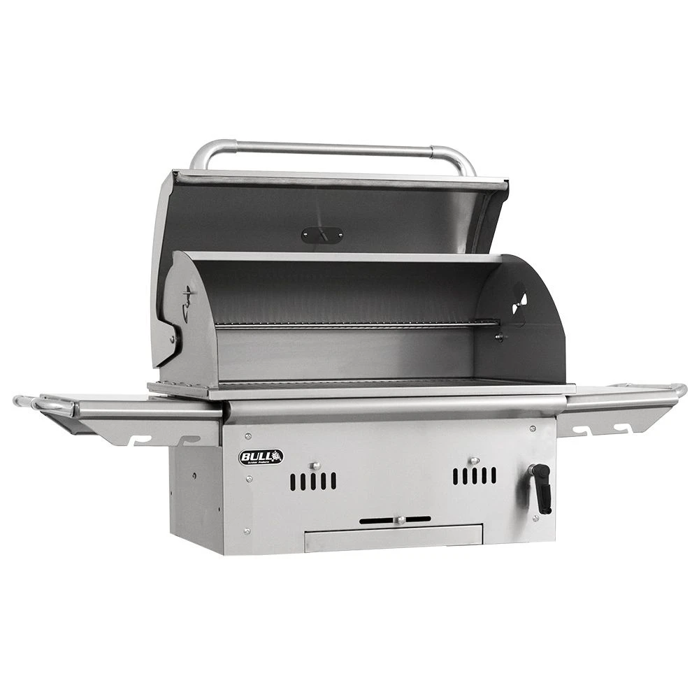 Bull BG-88787 30-Inch Bison Premium Built-In Charcoal Grill offers a high performance built-in charcoal grill alternative for your perfect outdoor kitchen. The 30-inch Bison grill is housed inside premium 304, 18 gauge stainless steel to ensure durability and longevity while the updated vent and gasket system offers greater temperature control and efficient oxygen flow throughout the firebox. The thick stainless steel grates offer high surface area to create the professional style sear marks everyone desires while the adjustable charcoal bed adds to the versatility of a unit that specializes in both low and slow BBQ grilling and high heat searing. The dual lined grill hood guarantees a flavor lock and great heat retention during cooking while keeping grillers safe from the charcoal’s smoke. Do yourself a favor and reward yourself this grilling season with a superior charcoal grill station from Bull BBQ.