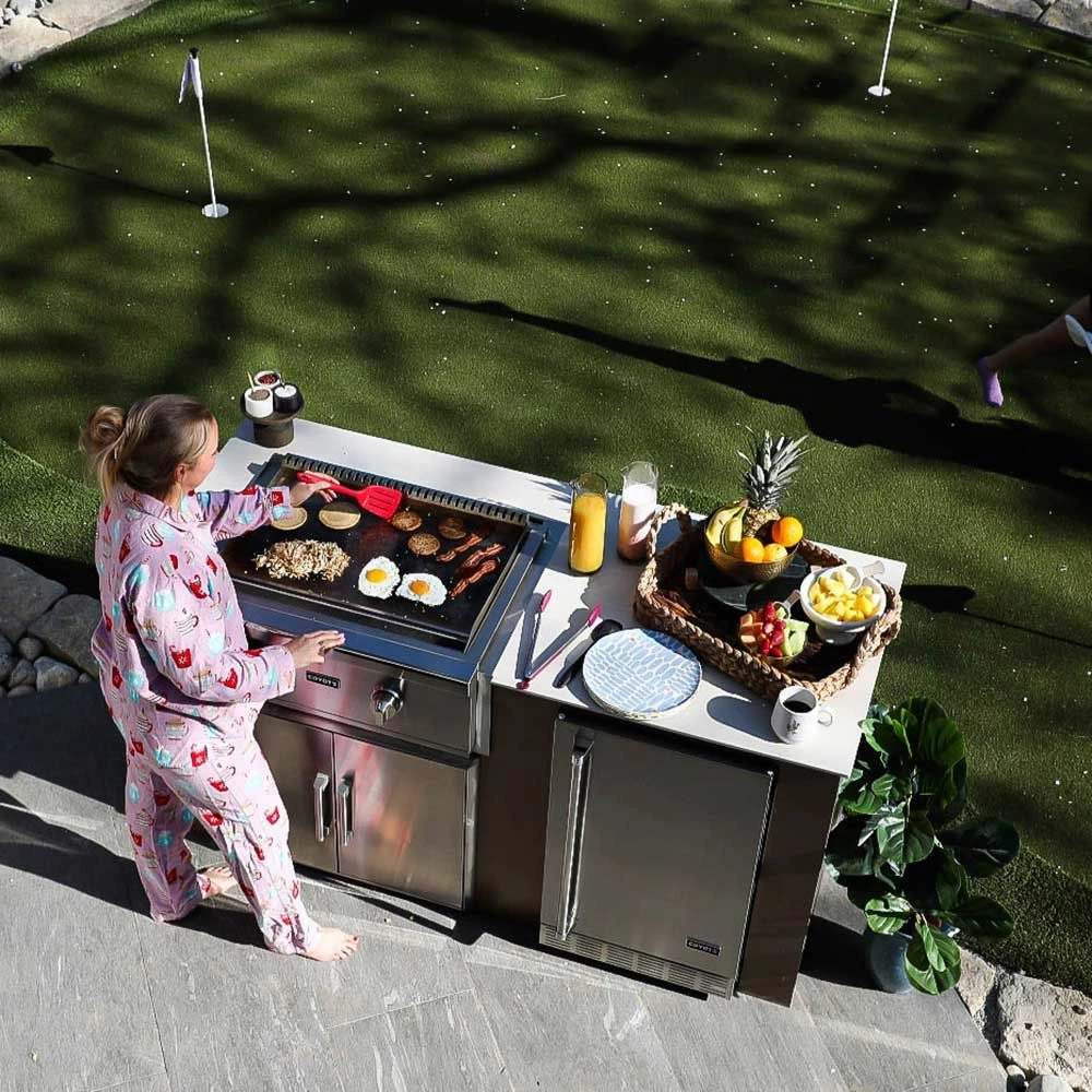 Coyote Stainless Steel Built-In Flat Top Gas Griddle, 30-Inch (C1FTG30) provides a premium grilling option for your outdoor kitchen. The Coyote flat top griddle features complete 304 stainless steel construction and has been manufactured for high performance with two individually controlled heating zones and a heavy gauge cooking surface for even heating across all 400 square inches of cooking space. Additional features include an LED gas supply safety light, stainless steel cover and removable grease trap.