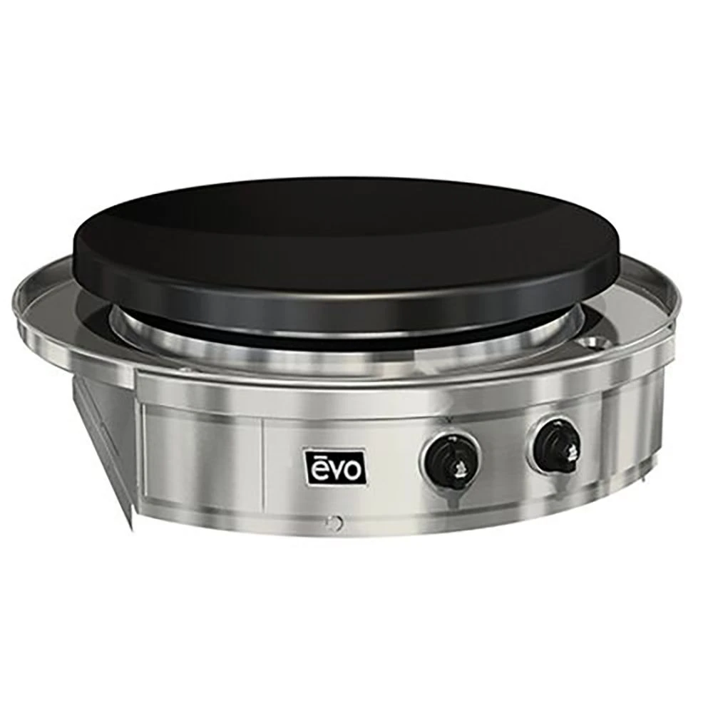 Evo 10-0075 Affinity 30Gp Series Indoor 30-Inch Built-In Flat Top Gas Grill provides a unique grilling machine designed for use in your indoor kitchen. Featuring heavy duty stainless steel construction, an oil-seasoned steel cooktop, and inner and outer tube burners, every inch of this grill expresses premium quality and manufacturing. With its distinctive design, this Evo grill allows foods to be prepared directly on the cooktop, and either separately or simultaneously, pots and pans may be used the same way as a more traditional cooking surface. The 30-inch diameter surface of this grill offers 706 square inches of cooking space and edge-to-edge even surface temperatures ranging from 225 degrees Fahrenheit to 525 degrees Fahrenheit to suit a wide variety of cooking styles.