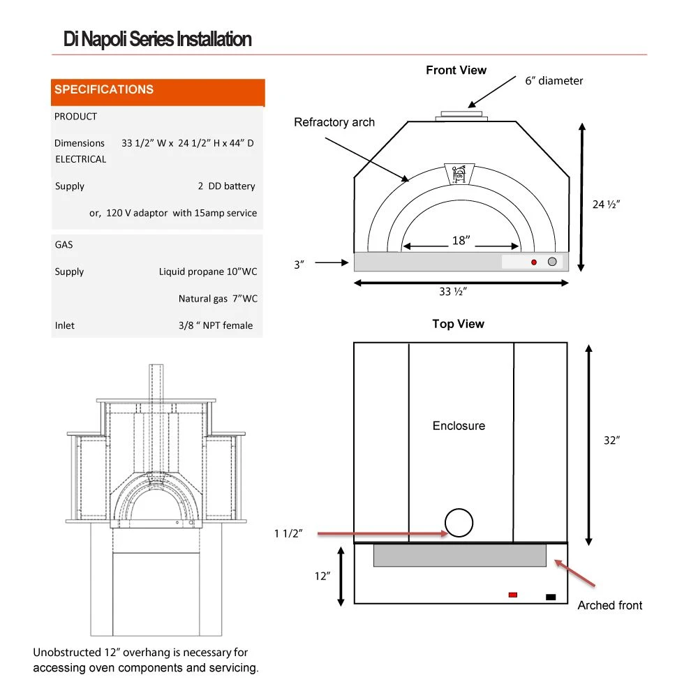 HPC Fire FDP-DINAPOLI/RTF-EI Di Napoli Dual Fuel Wood & Gas Built-In Pizza Oven With DIY Enclosure