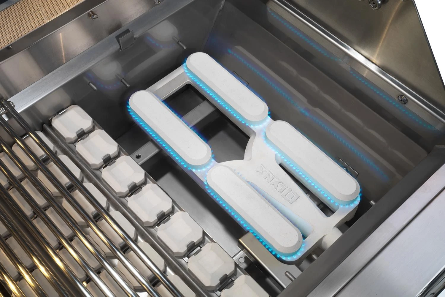 Lynx L54TR Professional Built-In Gas Grill, 54-Inch combines innovative features, unparalleled performance, and superior craftsmanship to create one of the most advanced grills on the market. This BBQ grill features a heavy 16-gauge 304 stainless steel construction with smooth welded joints and polished mirrored edges for a blend of style and durability that will stand up to the elements in any climate. Designed for professional-style performance, the premium ceramic burners provide a whopping 25,000 BTU for extreme high heat output that’s evenly distributed while the ceramic radiant briquettes provide a charcoal-like infrared heat for an enhanced gas grilling experience. With LED backlit control knobs, internal halogen grill lights, a removable smoker box, rotisserie system with infrared rear burner, and a hot-surface ignition, this unit combines all of the requisite features of a high-end grill and then some – so you can create the best barbecue.