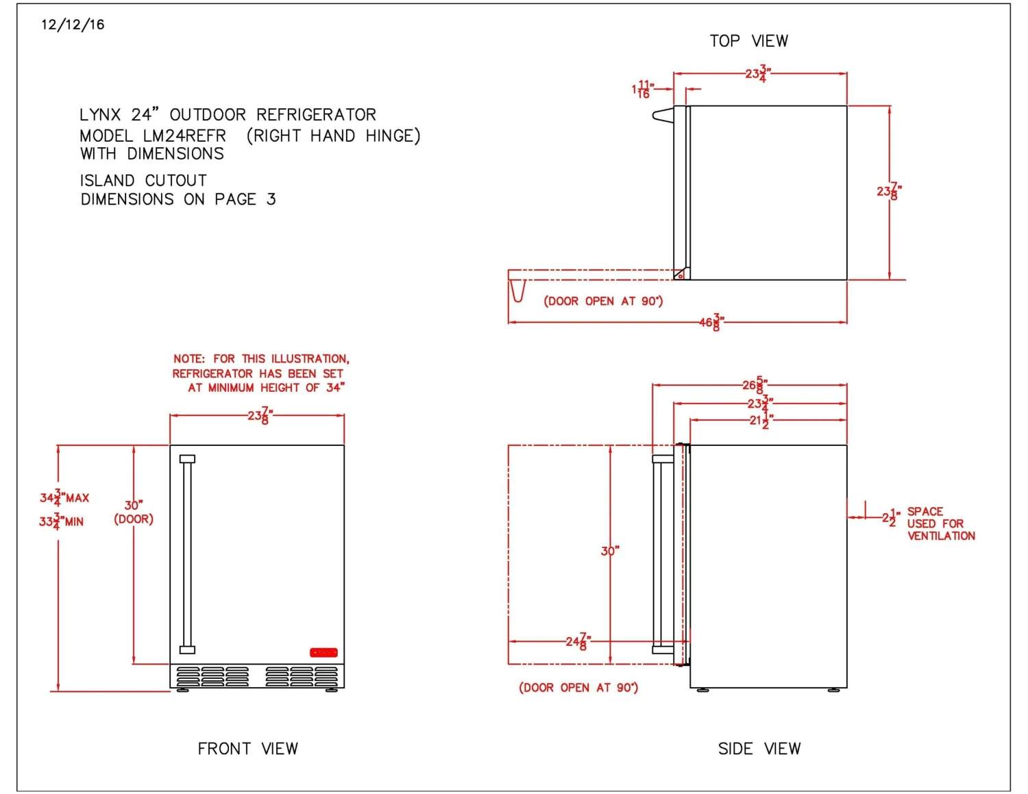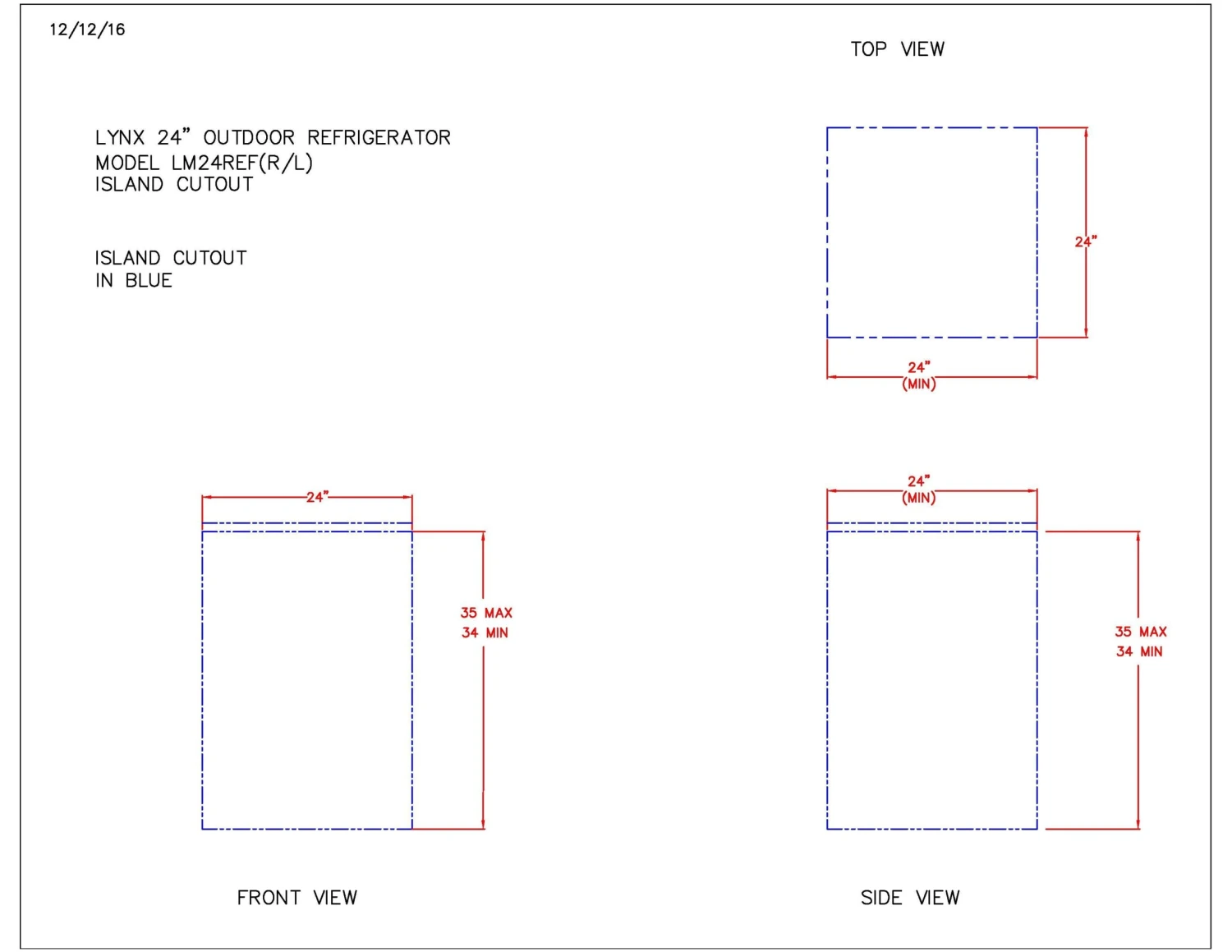 Lynx LN24REFC Stainless Steel Outdoor Refrigerator with Freezer Combo, 24-Inch provides a high quality outdoor kitchen refrigeration option to complete your ultimate outdoor BBQ paradise. This unit is built from 16-gauge 304 stainless steel with smooth welded joints for a blend of style and durability that will stand up to the elements in any climate. This outdoor refrigerator is UL listed for outdoor use while the large capacity provides plenty of outdoor refrigeration space, featuring (4) tempered glass shelves with adjustable positions complete with striking LED lighting. The interior 1ft³ freezer features a self-closing door and is large enough to hold up to 12 pints of ice cream while an automatic defrost feature provides frost-free operation – plus an optional ice maker kit is available to produce and store up to 13 pounds of ice. The adjustable temperature control offers customizable cooling while the leveling legs and GFI equipped plug make this unit perfect for built-in or freestanding applications. The entire line of Lynx Professional outdoor kitchen equipment features the same polished stainless construction for a matching stylized look to transport your kitchen outdoors.