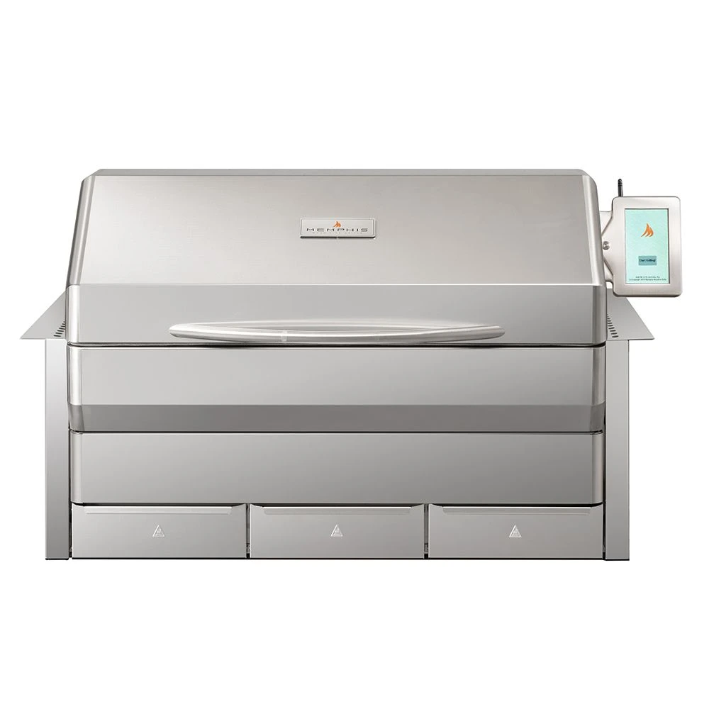 Memphis Grills VGB0002S-ITC3 Elite ITC3 Built-In Wood Fire Pellet Smoker Grill, Wi-Fi Controlled, 304 SS Alloy combines high quality construction and innovative features to create one of the most advanced pellet smokers on the market. An upgrade of the original Elite model, this pellet grill features new IntelliBurn technology, which uses a secondary combustion system to create more heat while using less fuel, giving you more mileage for your money. The heavy duty 304 stainless steel construction ensures a long lasting and durable product while the 6mm nickel-plated steel cooking grates create a non-stick cooking surface that’s perfect for smoking and grilling alike. The dual wall firebox and oven quality gasket create a tight seal to provide a well-insulated cooking area while the 24-pound hopper capacity allows for up to 62 hours of uninterrupted cooking time. The 848-square-inch cooking area (up to 1,256 with optional grates) can be heated from 180°F to 700°F all controlled through the integrated Wi-Fi controller and the free Memphis Mobile App available for both iOS and Android, the corresponding ITC temperature probe offers the ability to closely monitor the internal temperature of your food for professional style results.