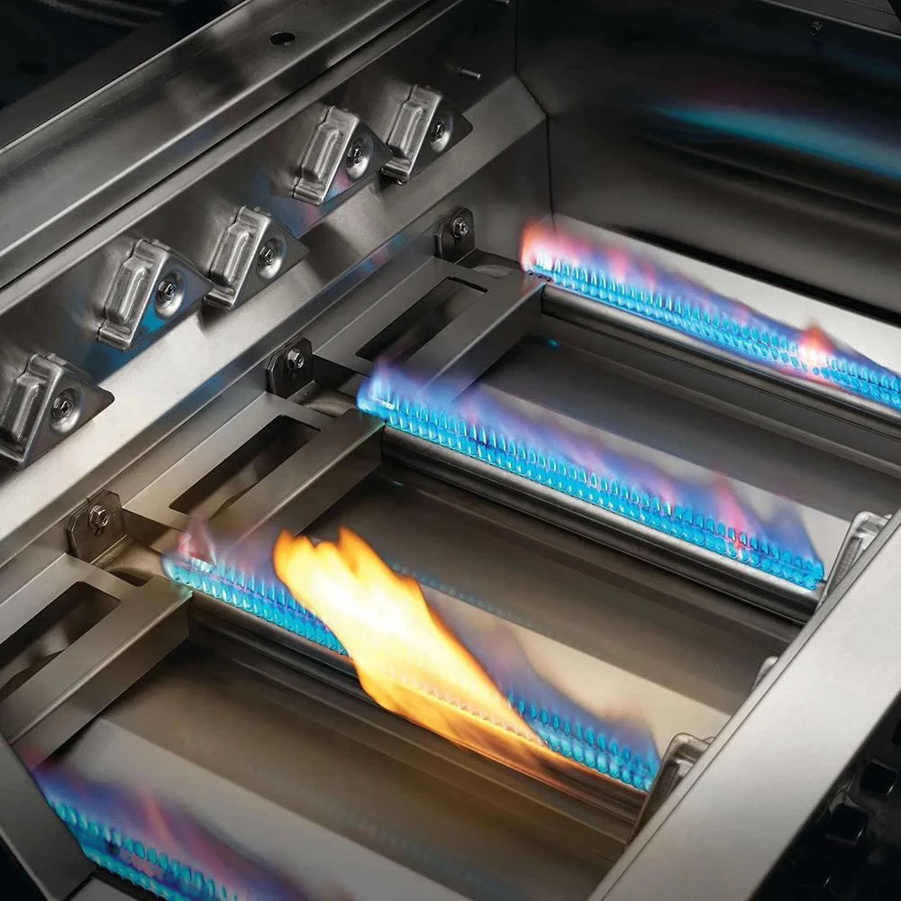 - Stainless Steel Burners – Four durable main burners offer powerful heat output