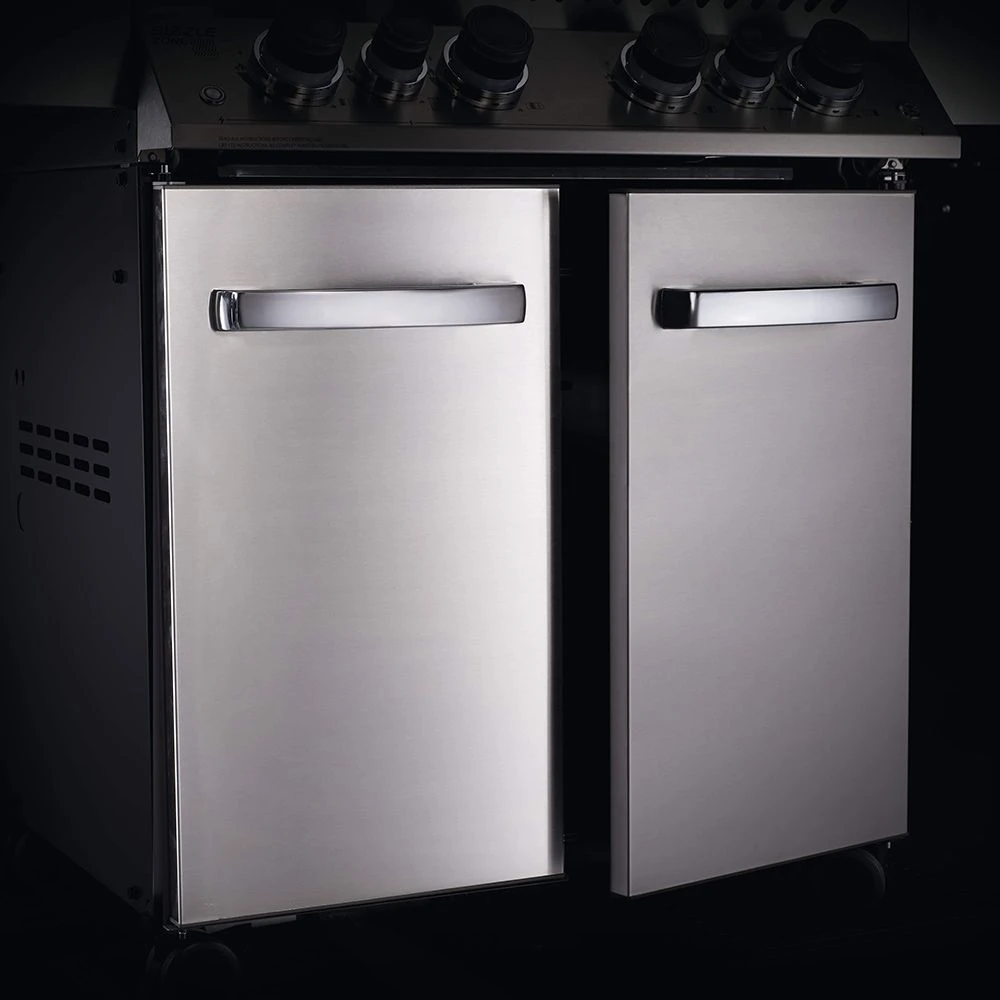 Napoleon P500RSIB-3 Prestige 500 Gas Grill On Cart with Rotisserie and Side Burner, 28-Inches delivers top notch performance without the price tag of a high end grill. The solid 304 stainless steel construction is designed for long term durability and ensures the grill will hold up to the elements. Each of the (4) main grilling burners are rated for a 12,000 BTU maximum and feature solid 304 stainless steel tube construction, and the stainless steel sear plates help protect the burners and provide even heat distribution, preventing hot and cold spots across the 500in² grill surface.