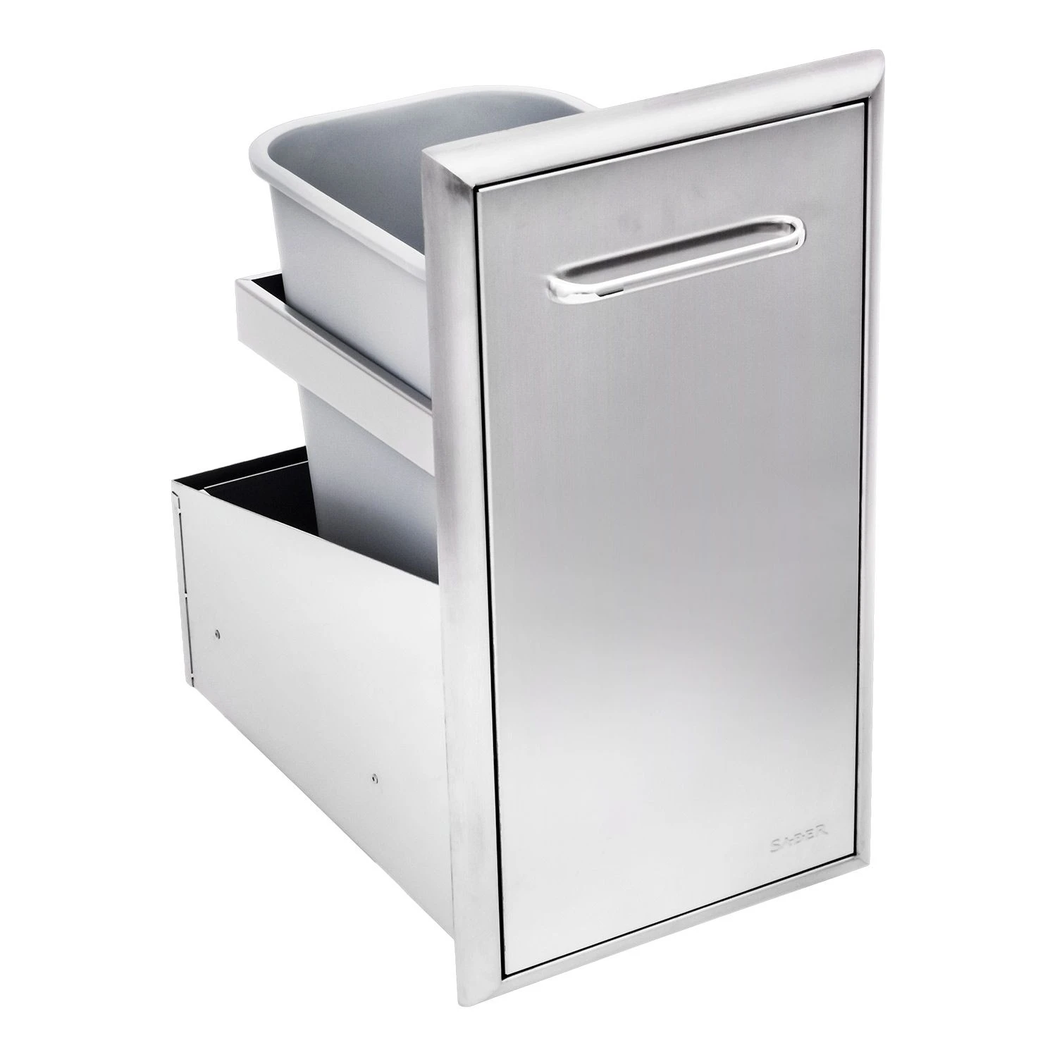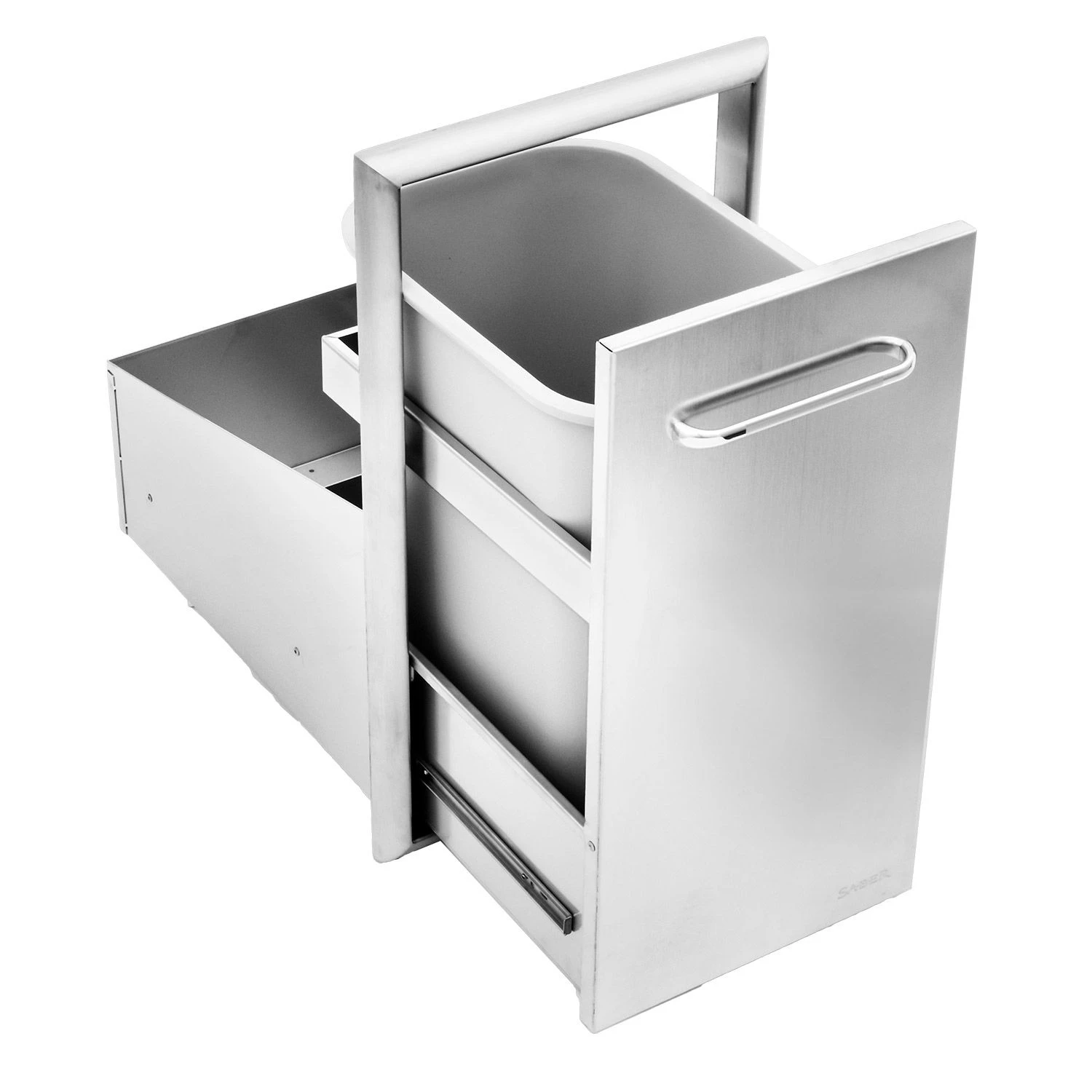 Saber K00AA6418 Stainless Steel Roll-Out Trash Drawer, 14×21-Inches provides a premium component for your outdoor kitchen setup. Featuring premium 304 stainless steel construction, this unit has been built to the same high standards as the rest of Saber’s outdoor products. This roll-out trash drawer provides easy access to an enclosed garbage bin to keep your waste out of sight. In addition, heavy-duty glides allow the drawer to operate smoothly on tracks for a high quality experience.