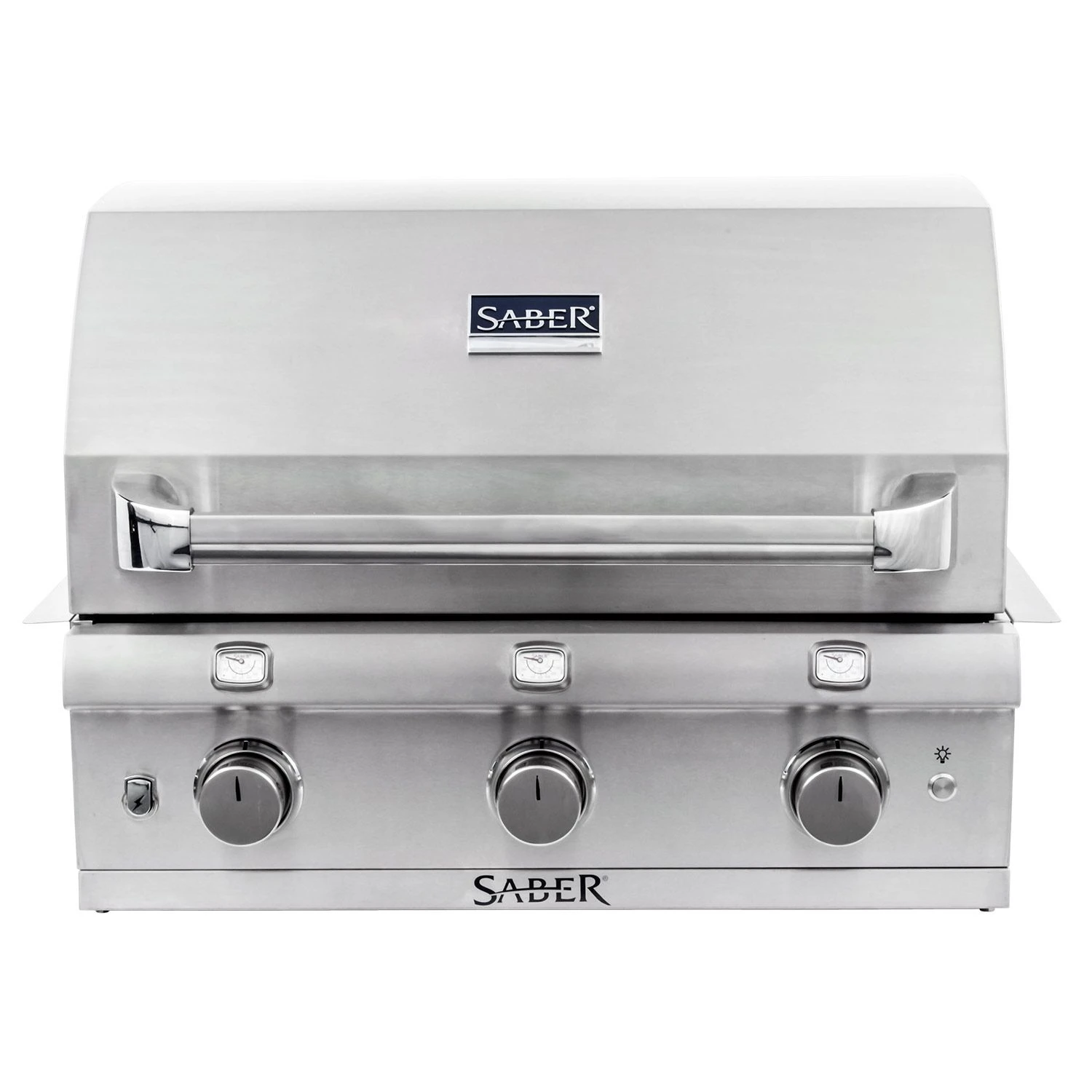 Saber R50SB0417 3-Burner Premium Built-In Infrared Grill, 32-Inches provides a premium addition to your outdoor kitchen. This grill brings restaurant quality results to your home with its patented Saber Cooking System. This innovative burner design heats evenly, eliminates flare-ups, and uses up to 30 percent less gas than comparable burners. This grill also offers a wider temperature range than traditional grills–from high temperature searing to low and slow roasting and everything in between. The Saber infrared can also pre-heat to searing temperatures in only 12 minutes to reduce the time it takes to get your food from grill to plate. When you’re finished grilling, the easy-to-clean design of the Saber grill allows food drippings to be burned off and brushed away with ease to save you even more time.