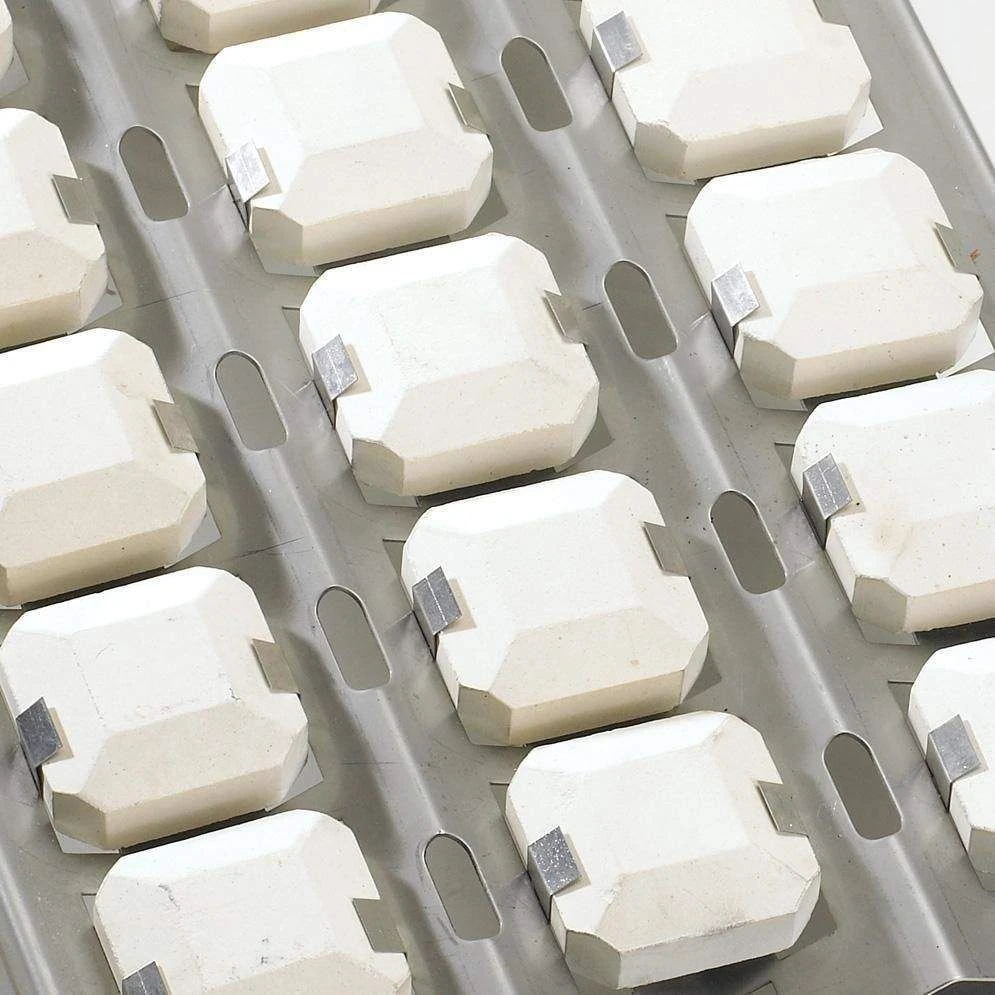 - Ceramic Briquette Trays High density ceramic briquettes sit above the burner and absorb heat in order to radiate more infrared heat across the grilling surface to simulate cooking on charcoal without the mess or hassle