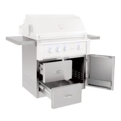 - LP Tank Storage – The cabinet provides convenient storage for a standard LP tank