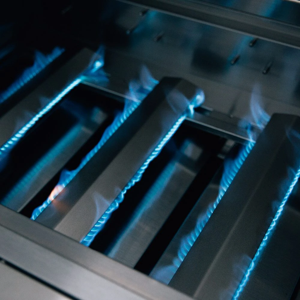 - Captured Briquette Trays – Unique ceramic briquettes sit above the burner to provide radiant heat and eliminate hot/cold zones across the 875in² cooking surface