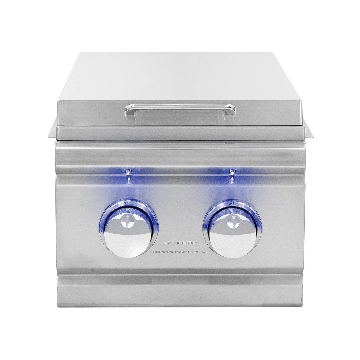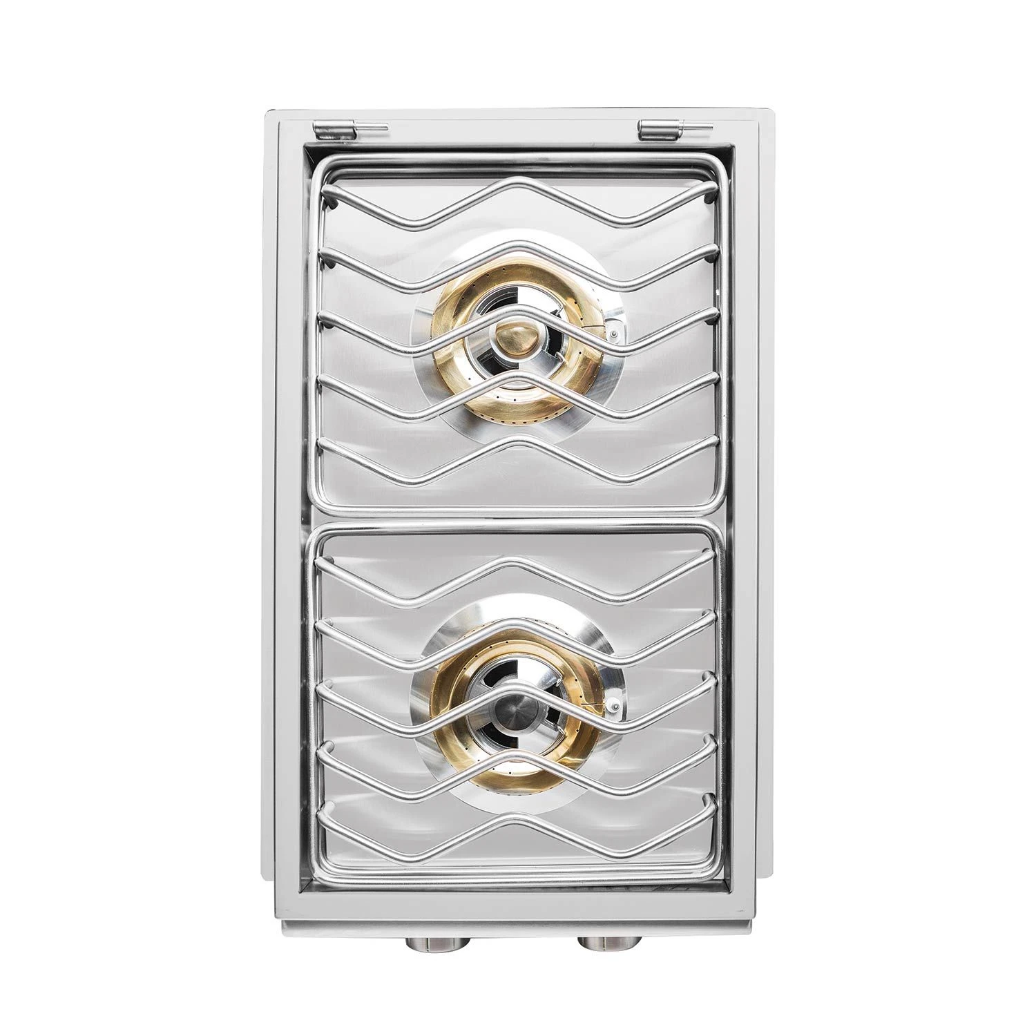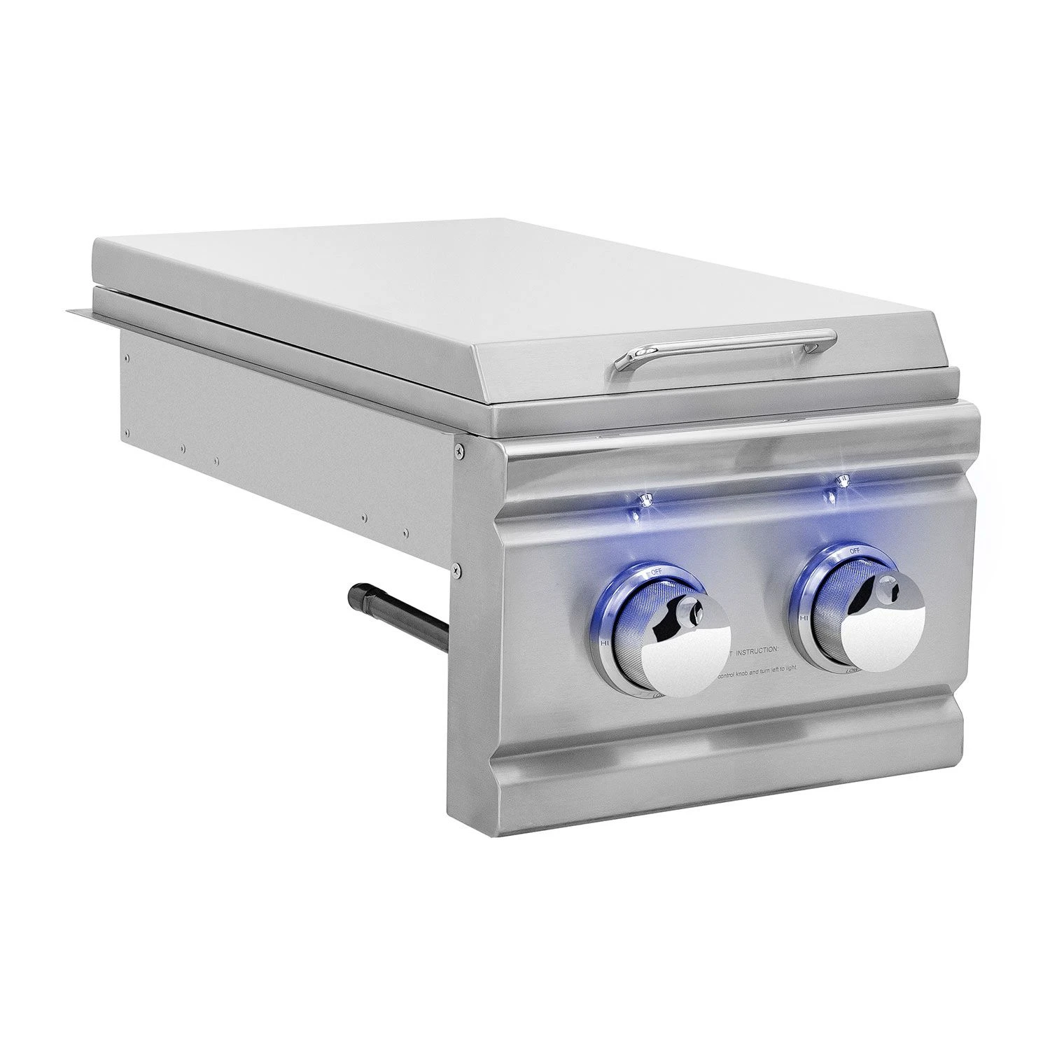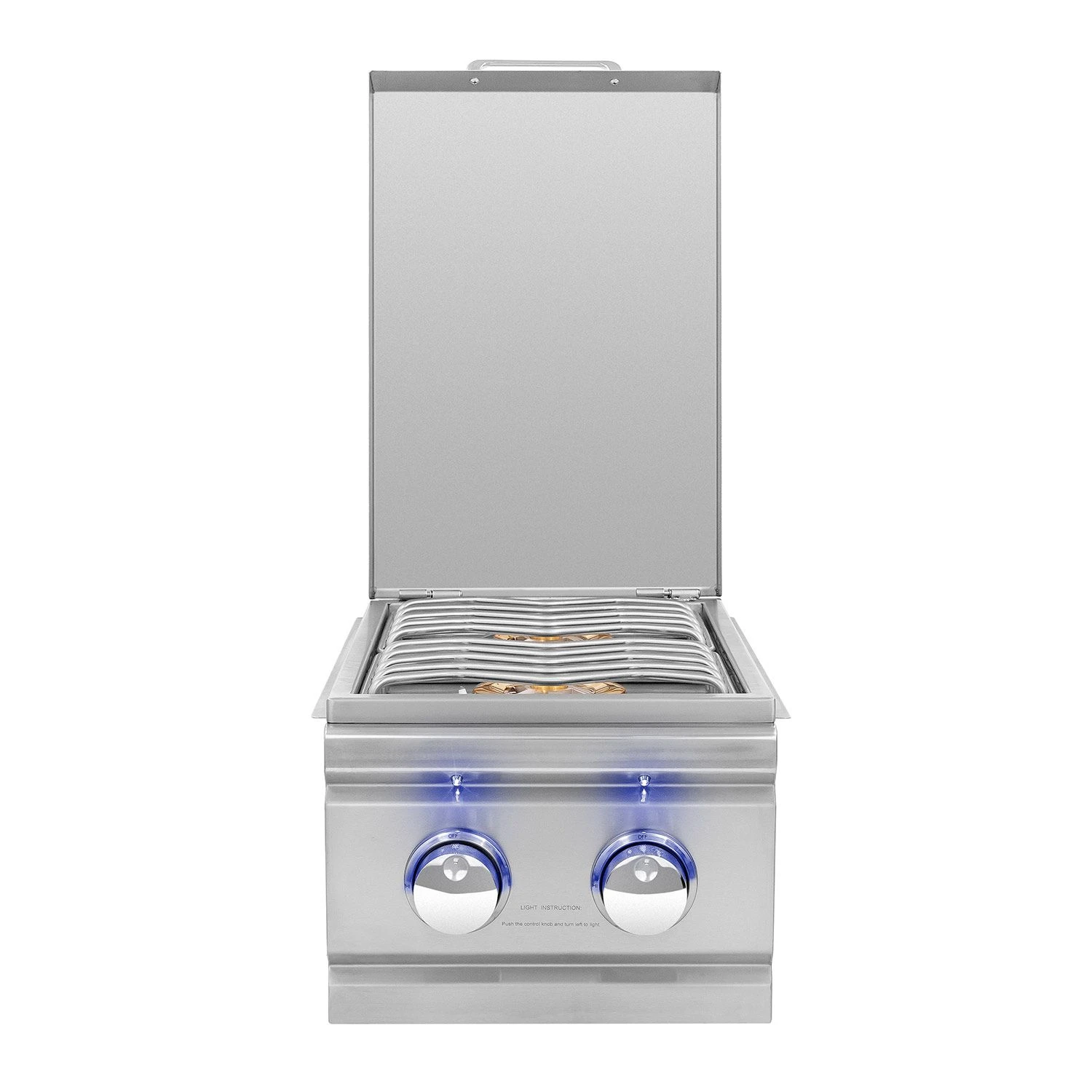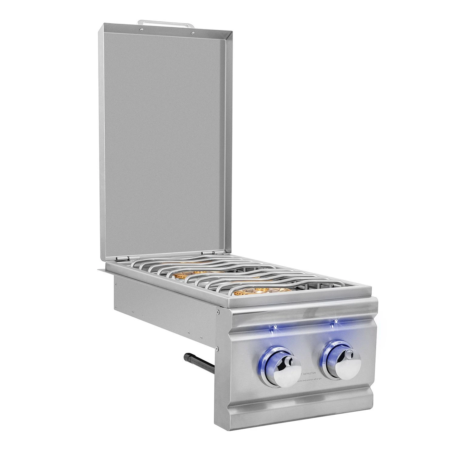 Summerset TRLSB-2 TRL Series Built-In Double Side Burner provides a superior quality built in side burner option that will help complete your outdoor kitchen. The complete stainless steel construction ensures durability and longevity while the contoured grates and LED front panel are designed to match the TRL Series grills. The stainless steel lid cover protects the (2) 15,000 BTU solid brass burners that provide traditional range style cooking that’s perfect to finish sauces, sides, and more. The 216in² cooking surface allows plenty of space while the 8mm stainless steel cooking grate is built for long term durability.