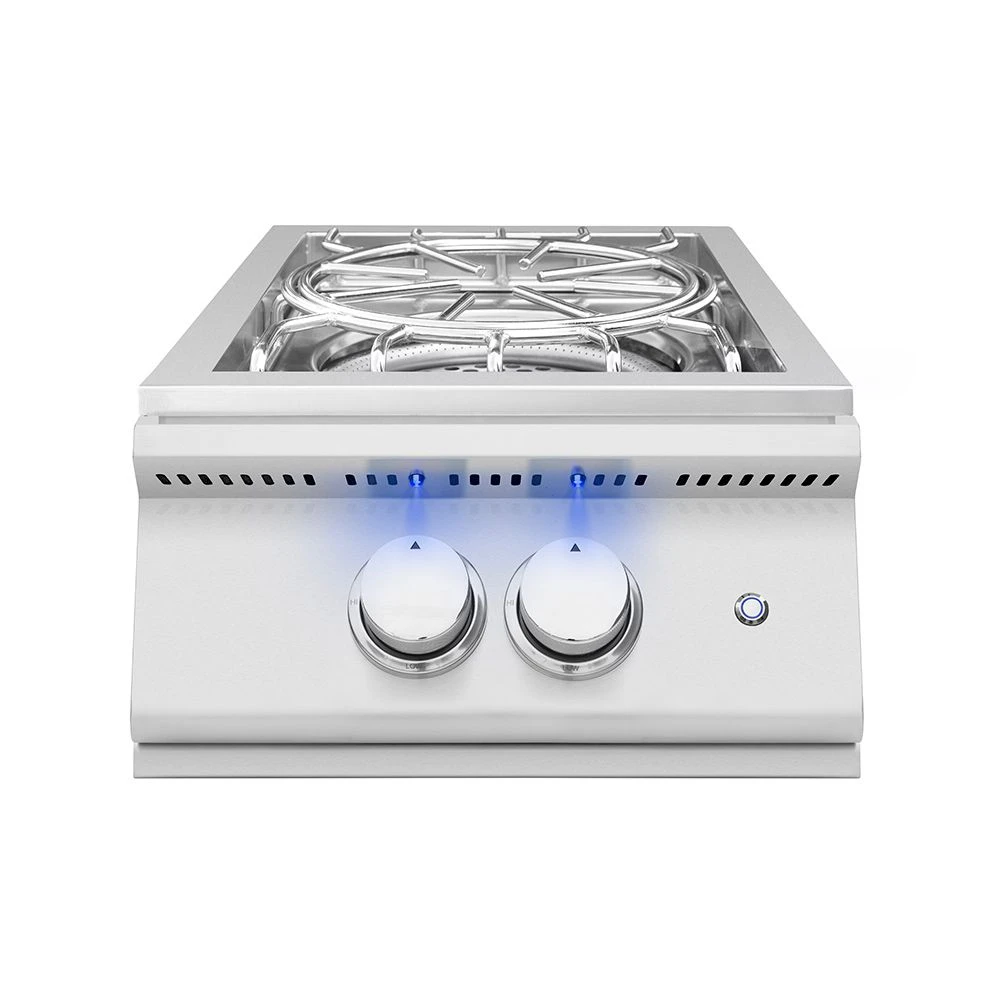 Summesret Sizzler Pro Series Built-In Power Burner provides a high quality stainless steel built in power burner option that will help complete your outdoor kitchen. Large, easy to turn control knobs with rugged surround make operation simple, above each light, bright blue LED lights illuminate the knobs for beautiful nighttime aesthetics. This burner features 60,000 BTUs of power to your outdoor kitchen to handle whatever culinary adventures you can imagine. Bringing the quality and power of a gourmet kitchen range to your grill island, this built-in power burner from Summerset allows you to enjoy all the benefits of cooking outdoors -stir fry, boil, steam, pan sear, and sides. Included is a stainless steel lid with handle removable interior grate for woks.