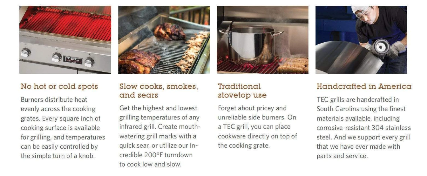 - Fuel Efficient Infrared – 100% Infrared burners are much more efficient than conventional gas burners; radiant heat also allows conventional cooking methods in addition to infrared grilling