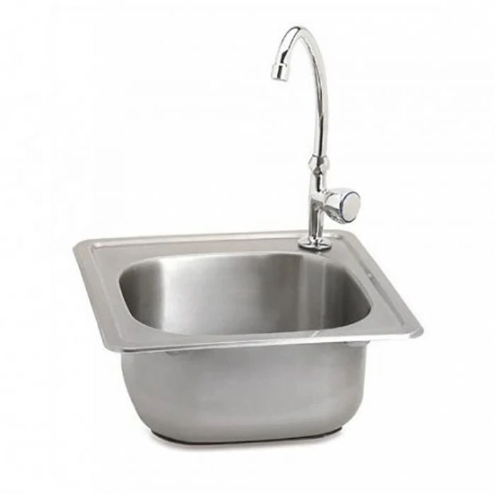 The Outdoor GreatRoom Company SINK Stainless Steel Sink with Single Faucet offers a premium sink option for your outdoor kitchen space. This product is manufactured from 304 stainless steel and features an extra large 14.5-inch basin to fit all of your outdoor accessories. This sink kit features a flange on all sides to easily drop into the counter, while the 6-inch below/9-inch above height offers added versatility. Get the most out of your outdoor kitchen space with premium components from The Outdoor GreatRoom Company.