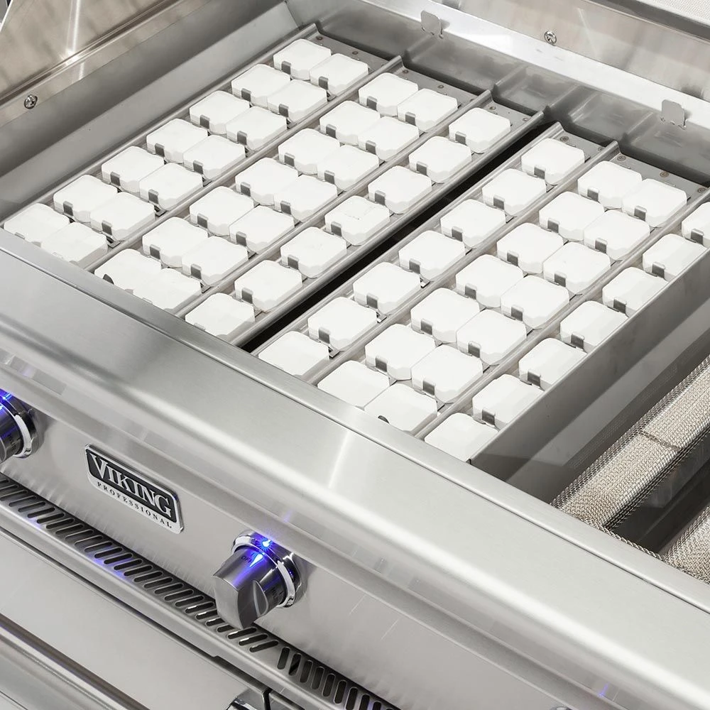 Rounding out the feature set, this grill also features a spring-assist hood with a heat-stabilizing design to keep the heat where it belongs and a built-in temperature gauge for easy monitoring. The addition of a reliable hot surface ignition for quick and easy starts and interior halogen lights and LED control knobs for low-light visibility takes the grilling experience from Viking to the next level. Finally, the included smoker box gives you just what you need to achieve delicious, slow-and-low smokiness. When combined with other items from the 5 Series, this grill is sure to become a staple of your patio paradise for years to come.